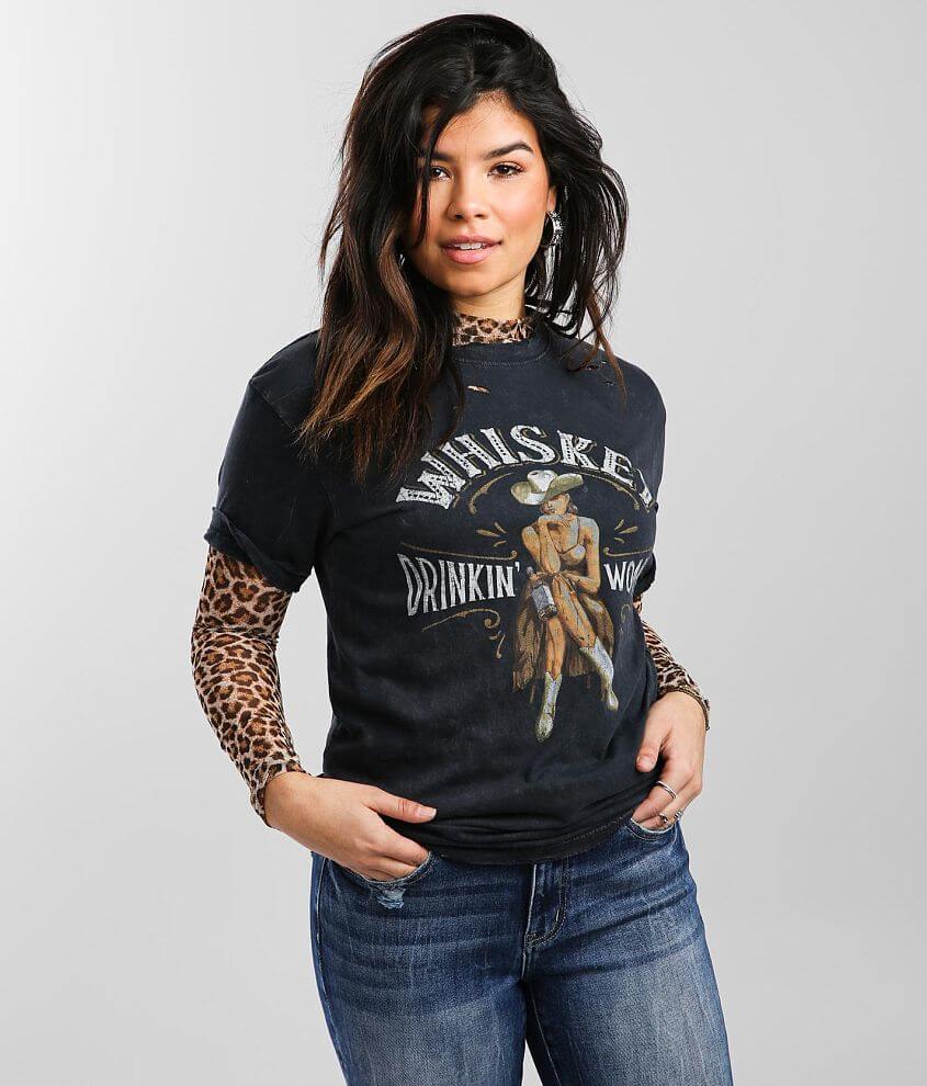 American Highway Whiskey Drinkin Women T Shirt Women S T Shirts In Black Lava Wash Buckle